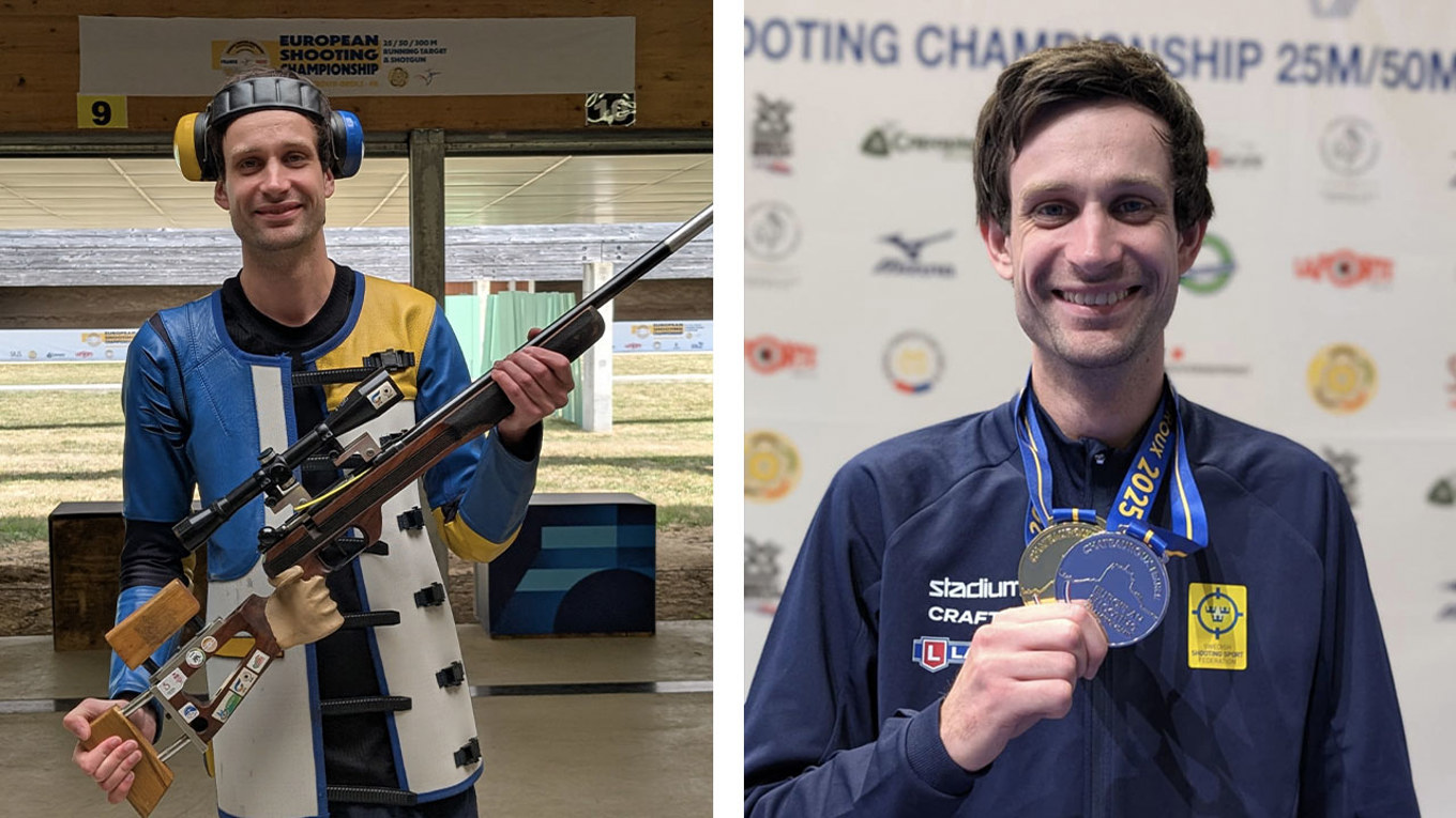 Jesper Nyberg sköt hem ett individuellt EM-silver och guldet i lagmatchen med Emil Martinsson och Pontus Thuresson. Lagets 1740 poäng är ett nytt officiellt världsrekord.