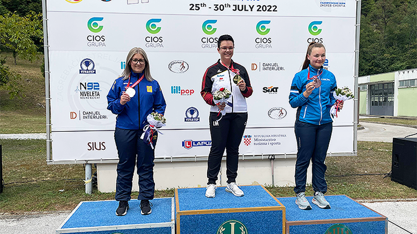 Elin Åhlin visar fin form på årets 300 meters EM i Zagreb. Igår var hon endast innertior ifrån en bronspeng i standardgevär men idag kom hon upp på prispallen och fick med sig ett silver. Med 582 poäng, fördelat på 194 i knä, 197 i ligg och 191 i stå, var Elin klar tvåa bland damerna, tre poäng före trean Henna Viljanen, Finland. Guldmedaljören Lisa Müller från Tyskland, sköt bara en poäng bättre än Elin, dock hade tyskan betydligt fler innertior.