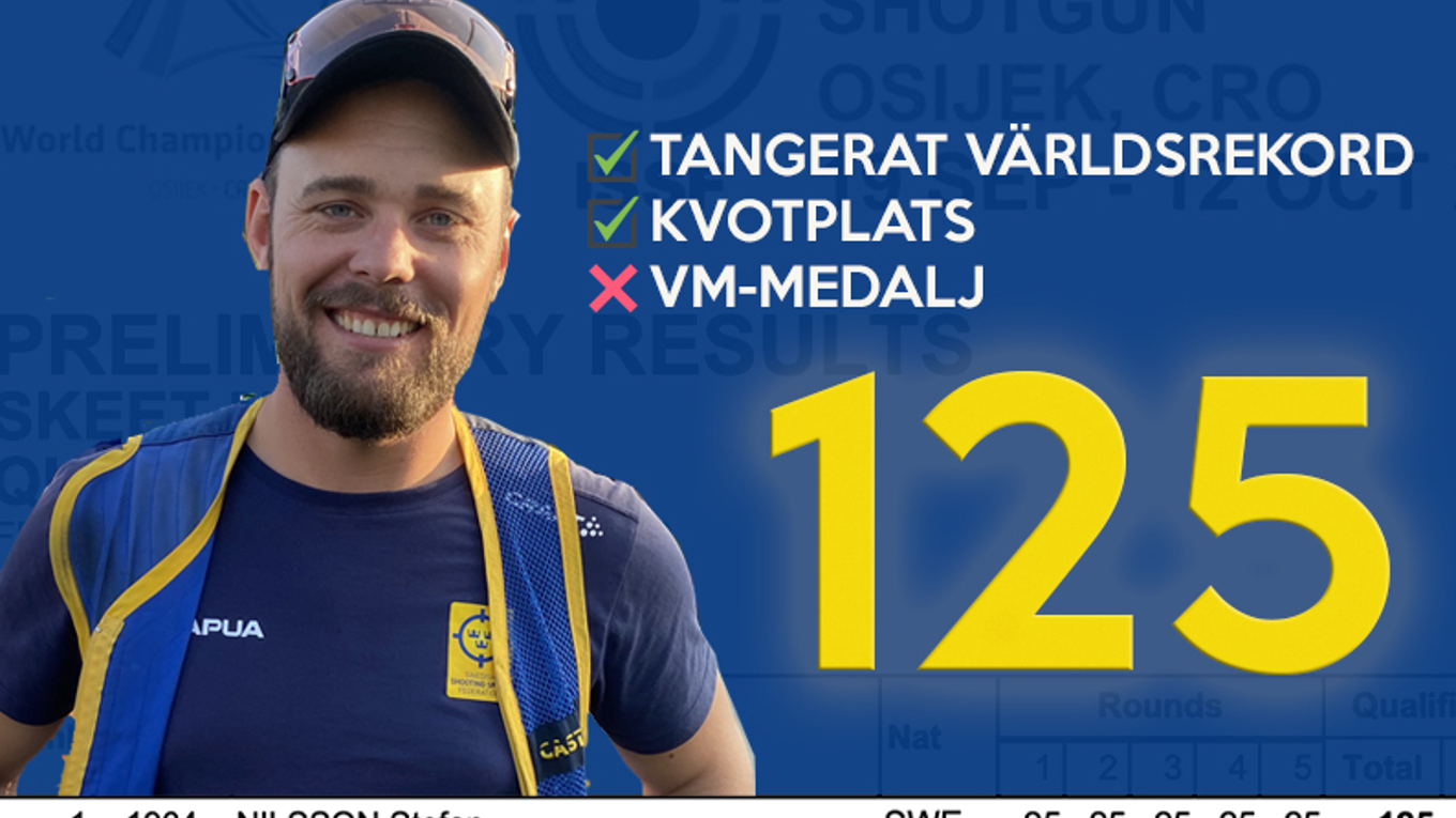 Stefan Nilsson stod för imponerande skytte på lerduve-VM. Han slutade etta i grundomgången med fenomenala 125 av 125 prickade duvor, vilket är tangerat världsrekord. Bättre resultat går det ju faktiskt inte att skjuta.