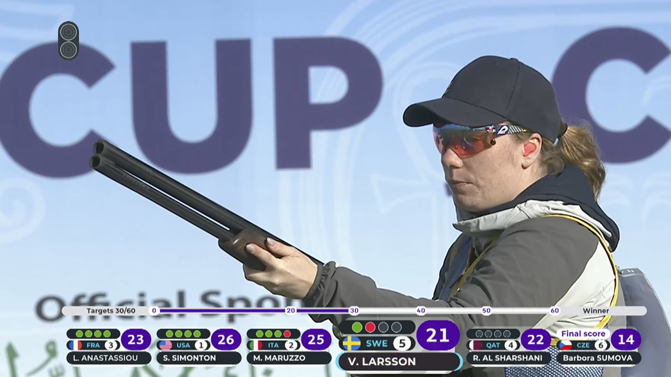Victoria Larsson tog sig vidare till final i säsongens första världscuptävling. I ett kyligt och blåsigt Kairo var det många skyttar som hade svårt att pricka duvorna vilket resultaten i grundomgången vittnar om. Victoria träffade 115 duvor vilket sällan brukar räcka till final i världscupsammanhang men i de svåra väderförhållandena var hennes resultat tillräckligt bra för att knipa en femte plats och avancera till final.