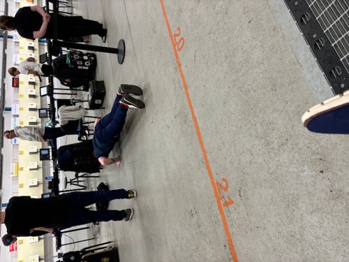 Vid denna tidpunkten kördes en övning med tvåmannalag där skyttarna fick turas om att stå på skjutplatsen medan lagkamraten stod bakom beredd på att göra ”burpees” ifall kollegan sköt under sitt snitt.