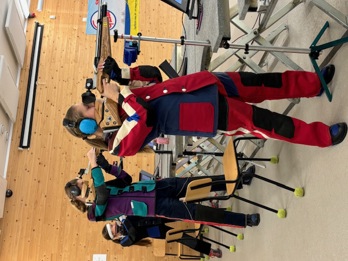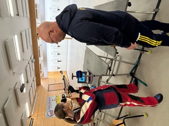 Lördagen inleddes med fika och snack, främst om uppvärmning och balansövningar, som en stund senare skulle tillämpas inne i luftgevärshallen.